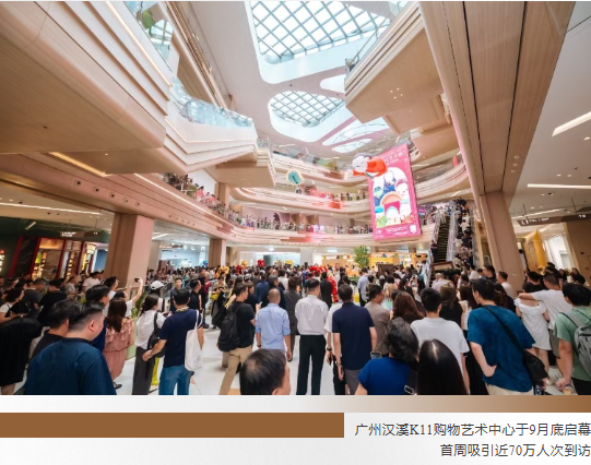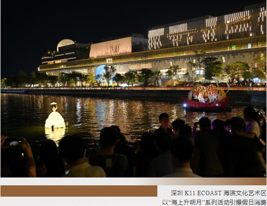 广州汉溪K11购物艺术中心于9月底正式启幕,作为长隆万博商圈的核心新地标,启幕首周就吸引近70万人次到访,为该区域商业注入新活力。而今年4月开幕的深圳K11 ECOAST海滨文化艺术区,于黄金周期间推出“海上升明月”系列活动,假期日均客流突破15万人次,成为大湾区备受瞩目的文旅热点之一。